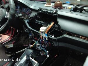 - Kiểu dáng và màu sắc màn hình hài hòa, phù hợp với tổng thể nội thất nguyên bản của xe.